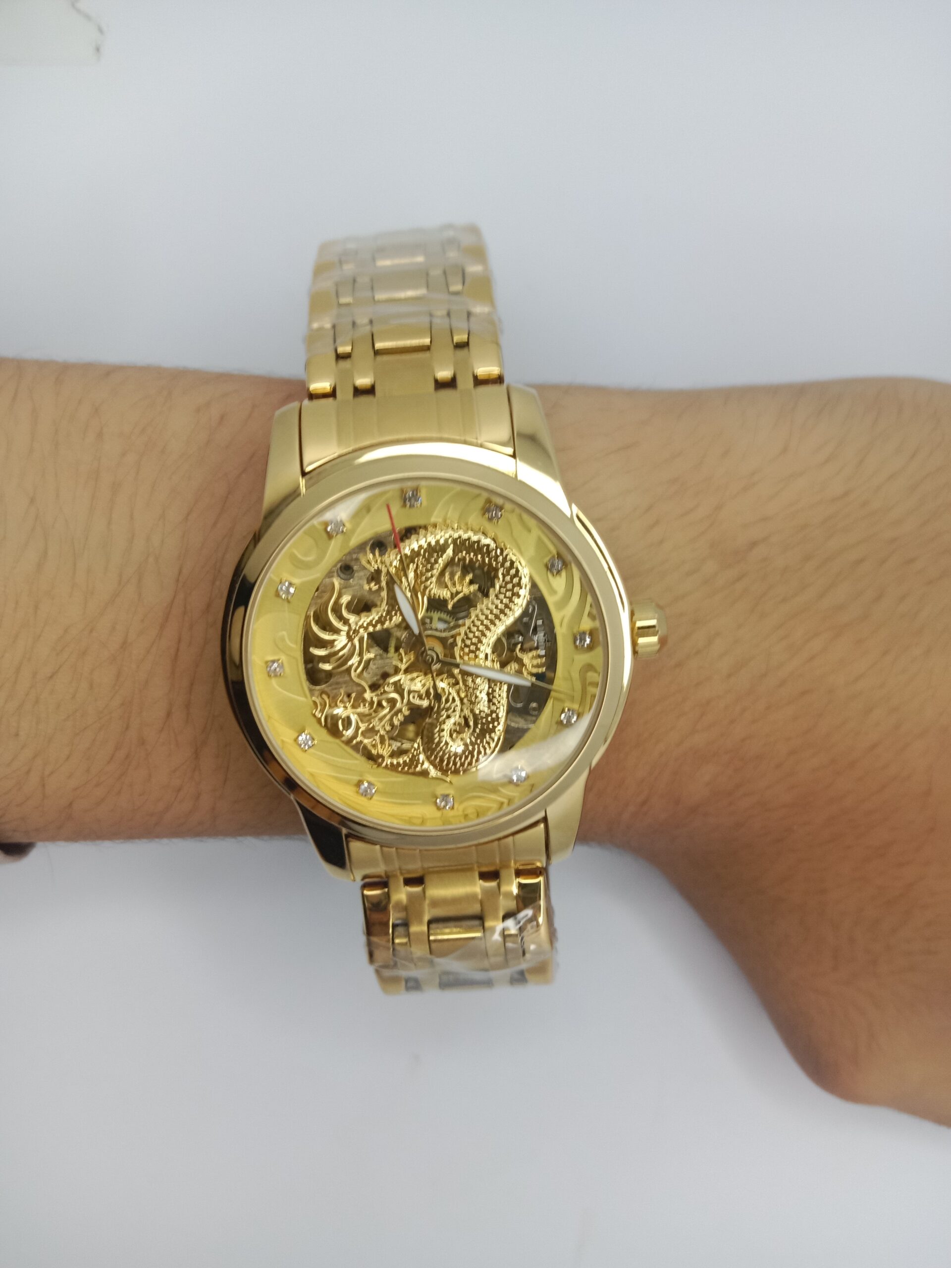 Luxury Automatic Mechanical Gold Dragon Stainless Steel Watch